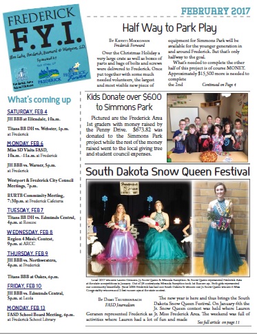 Check out the latest issue of the Frederick FYI Newsletter serving Frederick, Barnard, Westport and Elm Lake in northern Brown County, S.D.